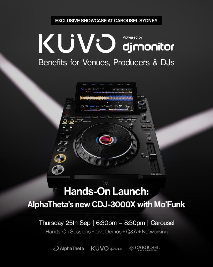 There’s also an Australian-first, in-person demonstration of the new features on the CDJ-3000X live with Mo'Funk. Guests are invited for a hands-on play with the new CDJ-3000X units, as well as a chance grab a drink and network with industry leaders.