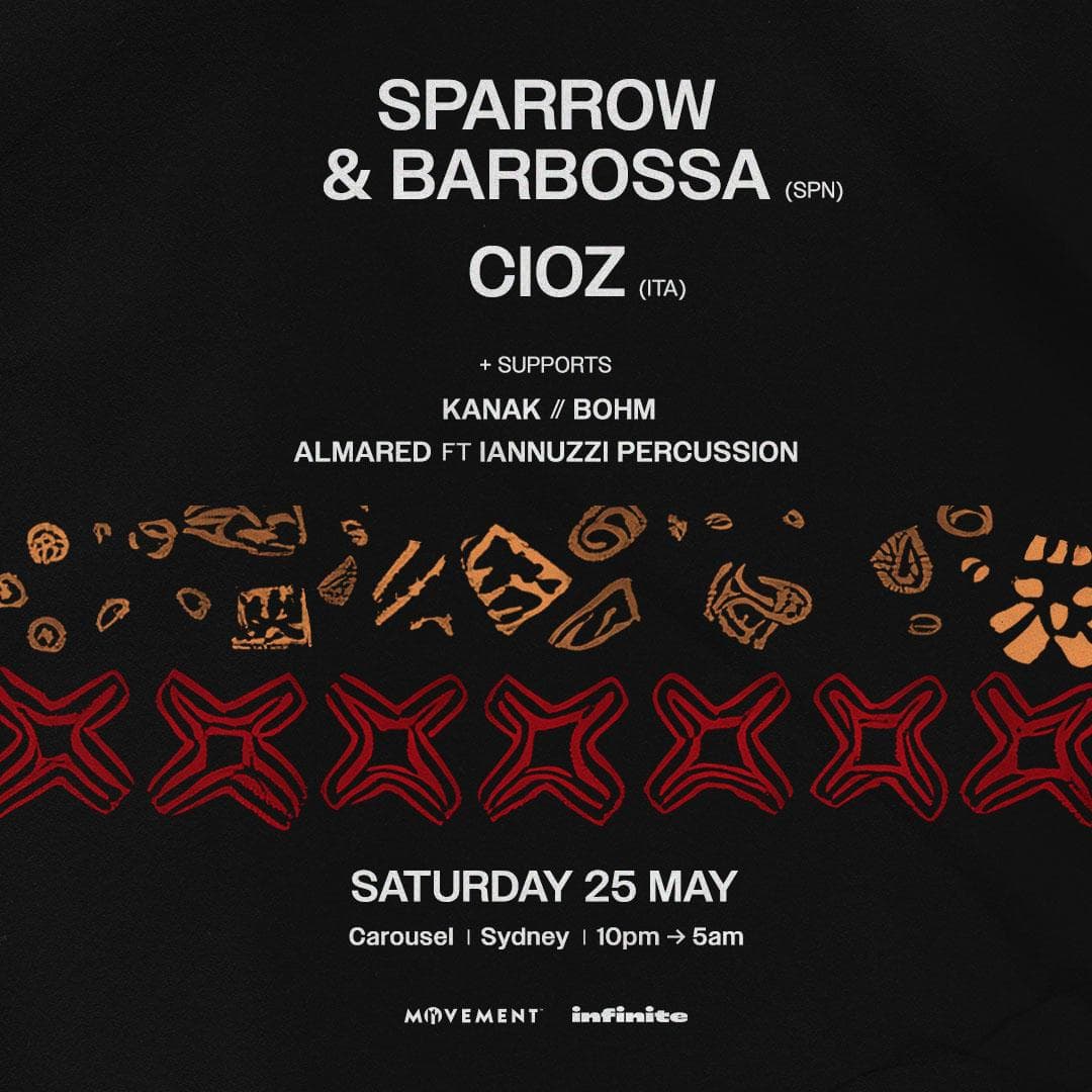 Leading the charge are Sparrow & Barbossa (Spain), known for their chart-topping hits under labels like MoBlack Records and Innervisions; this pair has taken the Afro House scene by storm with their soulful music and undeniable energy. After some livewire performances at the Eka festival & several venues from Ibiza to Tulum, Sparrow & Barbossa look to bring their groovy rhythms to Australia on their debut tour.