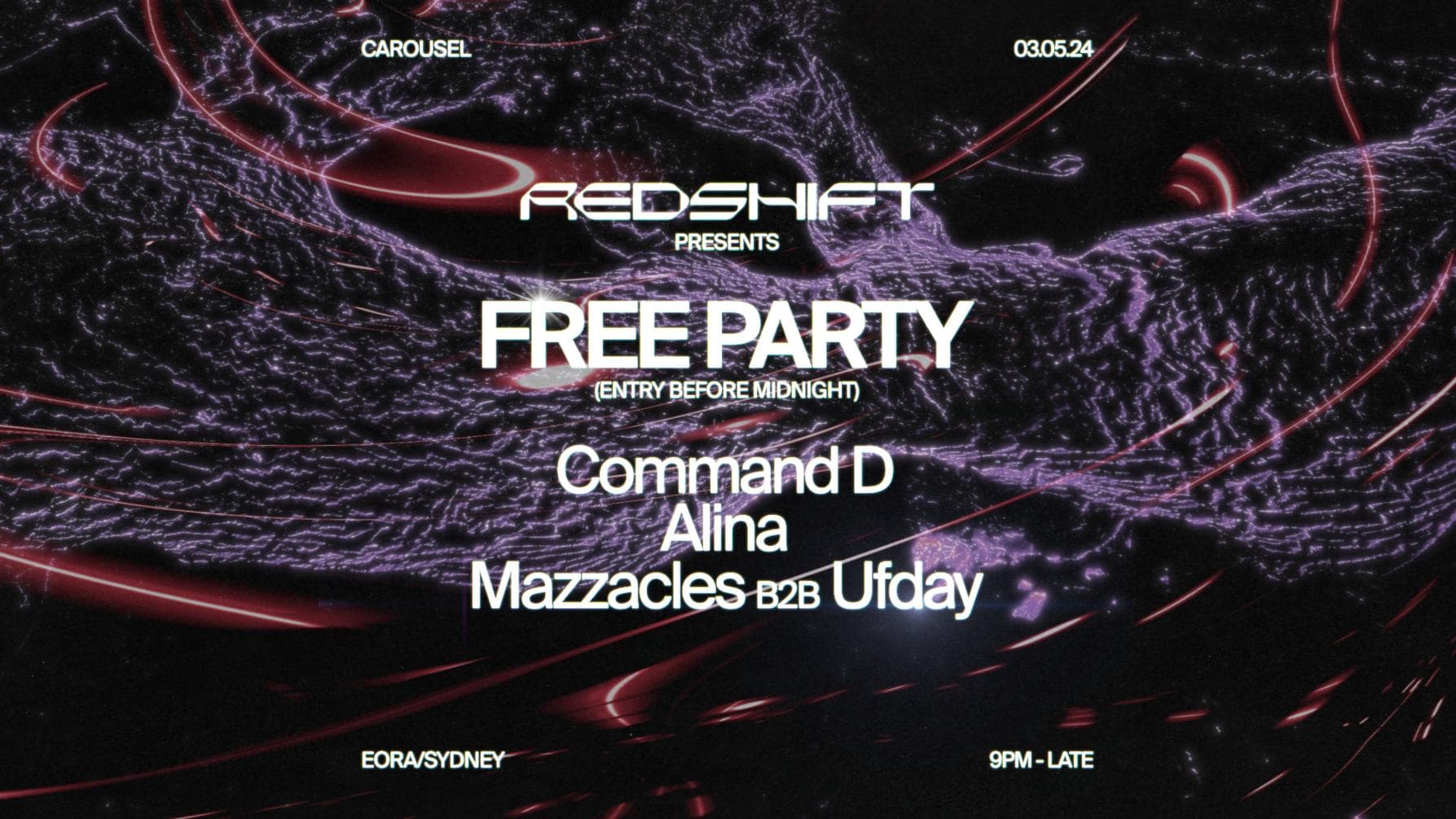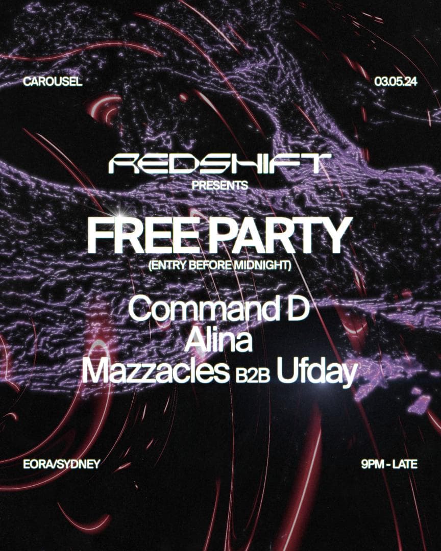Redshift Presents: FREE PARTY with Command D, Alina, Mazzacles B2B Ufday