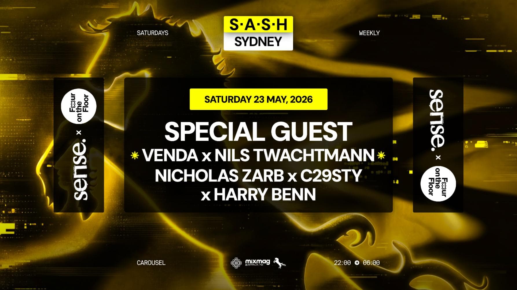 ★ S.A.S.H Sydney x Sense x Four On The Floor ★ Special Guest ★ Saturday 23rd May ★