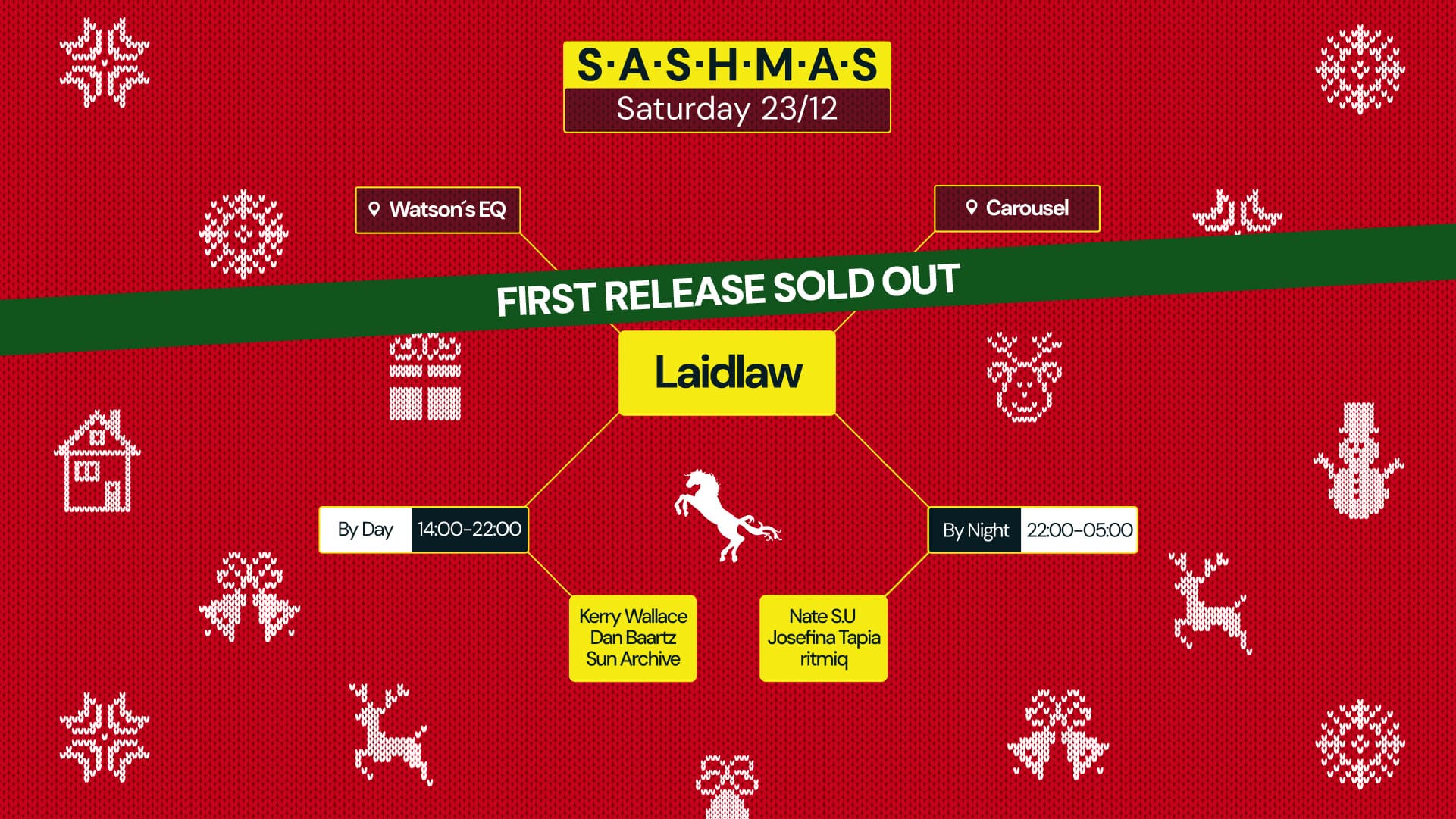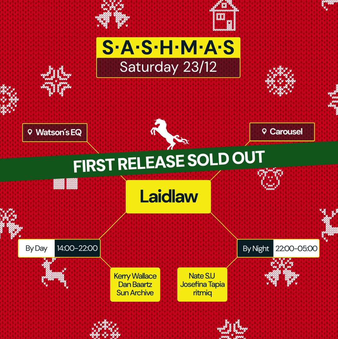 Yes that's right, this year we'll be celebrating SASHMAS on SATURDAY at Watson's EQ from 2pm - 10pm and Carousel from 10pm - 5am with Laidlaw to lead the charge across both stables.