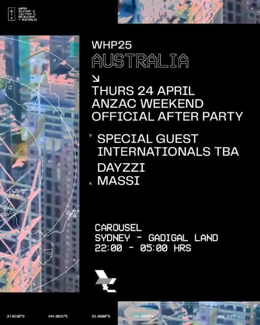 The Warehouse Project announces the official Sydney after party to be held at Carousel on Thursday 24 April featuring Dayzzi, Massi and special international guests to be announced.